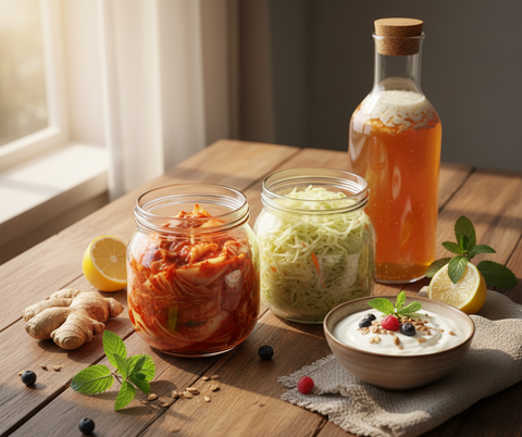 Probiotics (lợi khuẩn) và prebiotics (chất xơ nuôi lợi khuẩn) là bộ đôi “chìa khóa vàng” cho một hệ vi sinh khỏe mạnh. Thực phẩm lên men là nguồn tự nhiên dồi dào hai thành phần này.