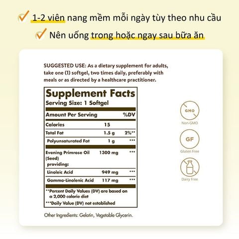 Tinh Dầu Hoa Anh Thảo SOLGAR EVENING PRIMROSE OIL 1300 Mg 60 Viên Nang
